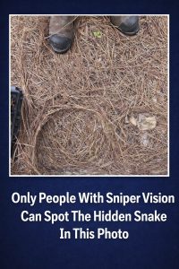 But look again—something is hiding in plain sight. The challenge is simple: spot the snake.Camouflaged perfectly among the twigs and pine needles is a snake so well blended that most people miss it entirely on their first try. Its natural coloring merges seamlessly with the forest floor, turning this calm image into a true test of observation. The illusion highlights how easily our brains can be tricked when shapes and patterns blend together.